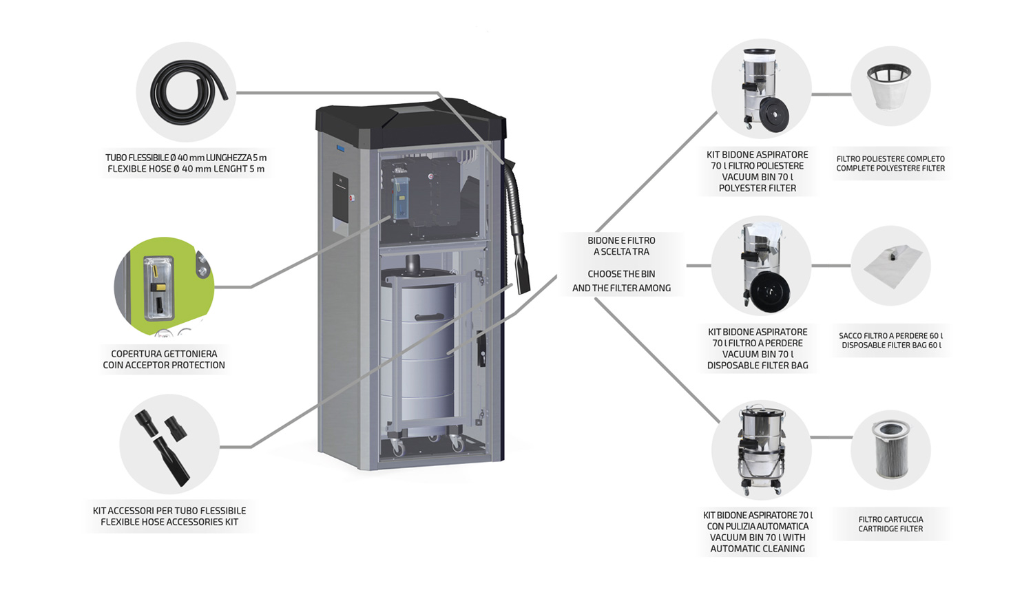 • - Gettoniera elettronica e possibilità di lettore card e/o key;