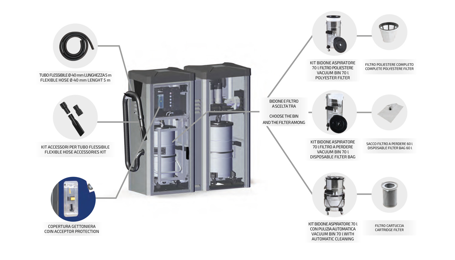 - Contenitore gettoni lucchettabile;